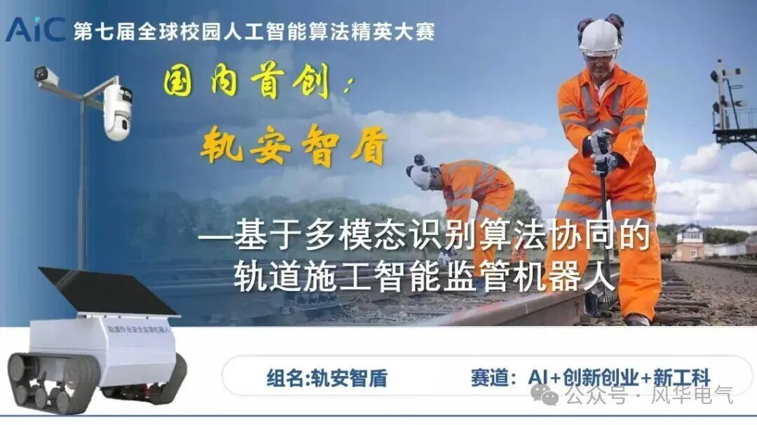 黄贻凤、王晓明老师指导,杨钟乐、胡佳怡、熊宇安同学共同完成的作品《轨安智盾—基于多模态识别算法协同的轨道施工智能监管机器人》——AI + 创新创业 + 新工科赛道;