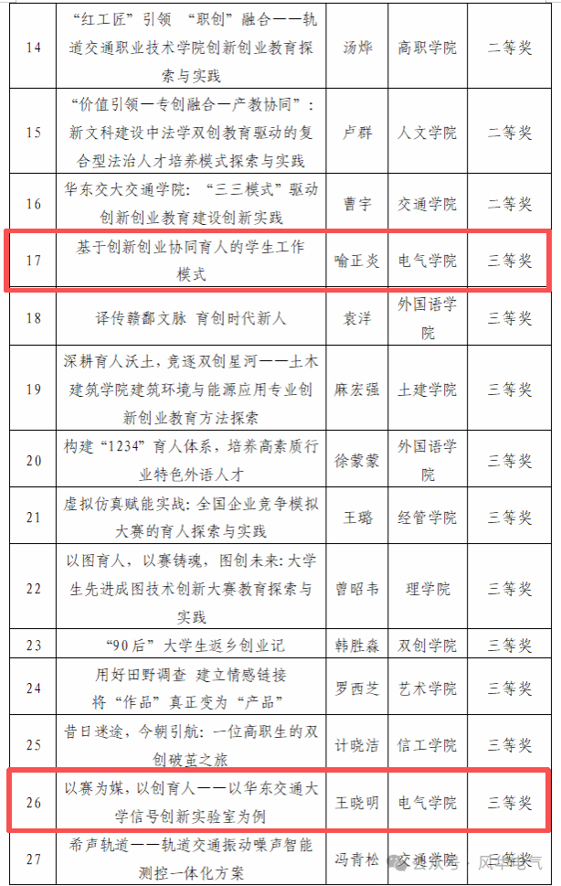 近日,学校创新创业学院公布了《关于公布创新创业教育工作优秀案例名单的通知》,此次评选中学院共计获得一等奖 1 项、三等奖 2 项,充分展现了公司师生在创新创业教育实践与探索中取得的扎实成果,彰显了学院在培育员工创新精神、提升创业实践能力方面的不懈努力与显著成效。