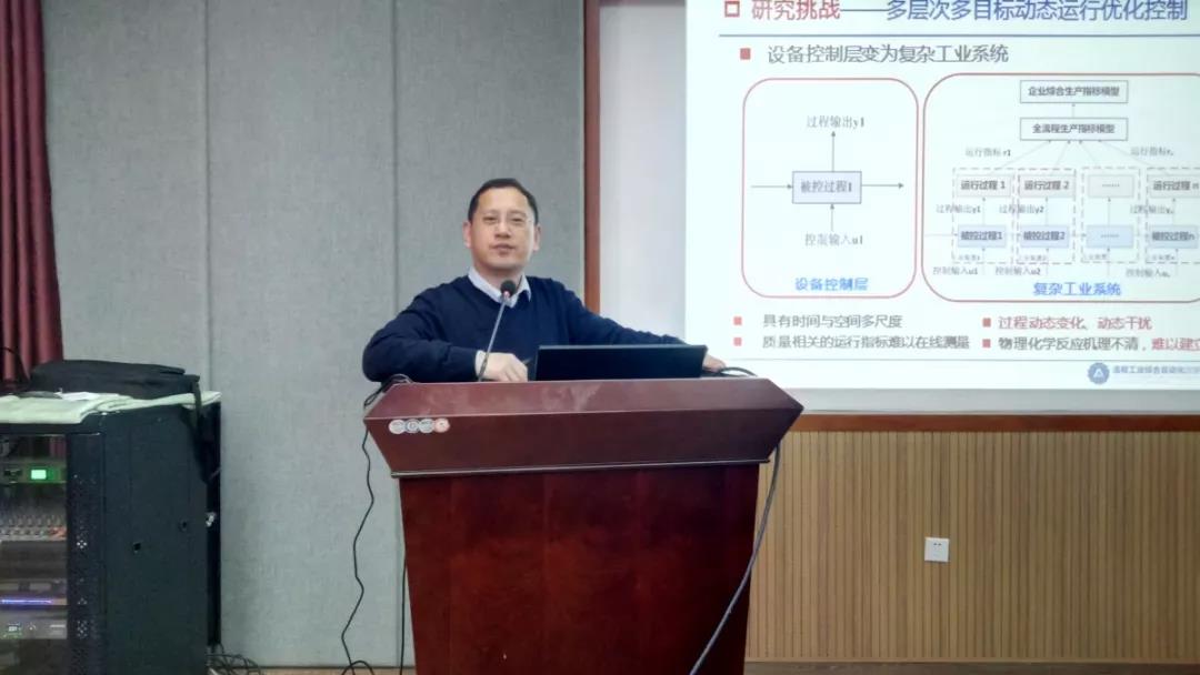 丁教授从研究背景、工业系统运行优化涵义与挑战问题、复杂工业系统智能运行优化方法和实验平台与工业运用四个方面进行了汇报。