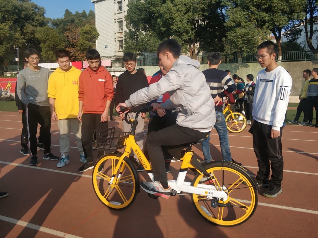 每个队伍出六个人,分别站于限制距离的两端,一边三个人,位于起点的人将共享单车骑到对面下来后,对面的人接着骑过来,如此循环往复。无论是老师还是员工,通过这个趣味游戏都在快节奏下体验了一把慢生活,同时也锻炼了一下个人的平衡力。