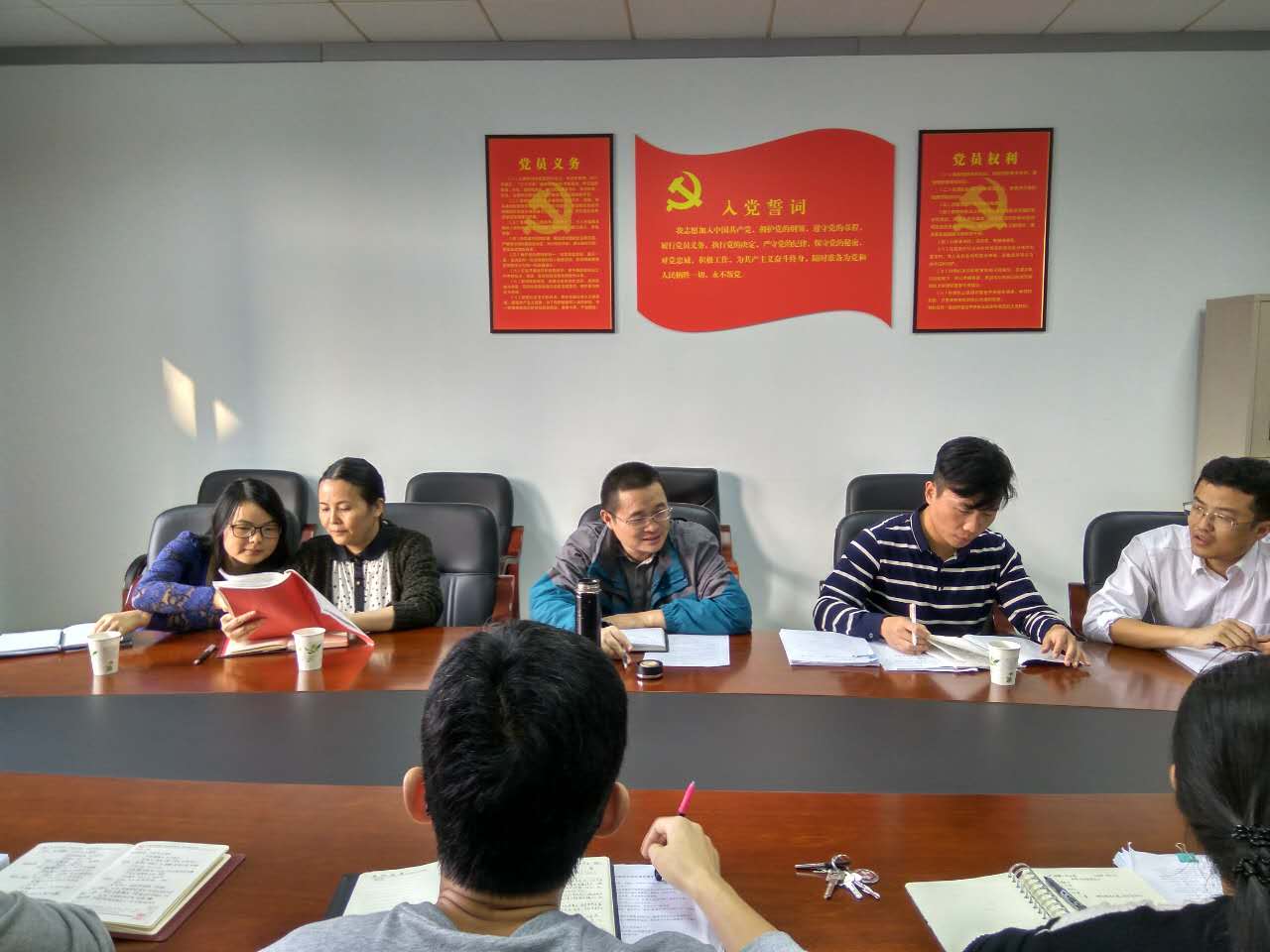 公司党委组织部随行成员王桂清老师检查了员工党员“两学一做”的学习笔记以及活动开展的策划与总结。督导组成员们还久就员工党员发展和培养等党建方面遇到的问题于学院进行了有效探讨。