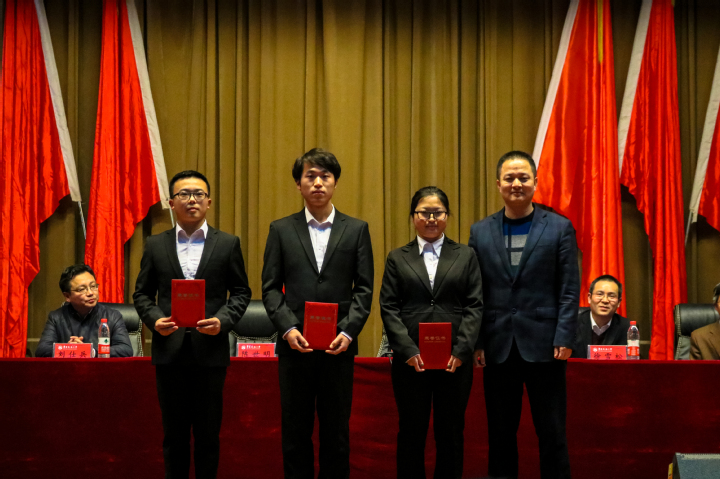 (陈世明经理为国家奖学金获得者颁奖)