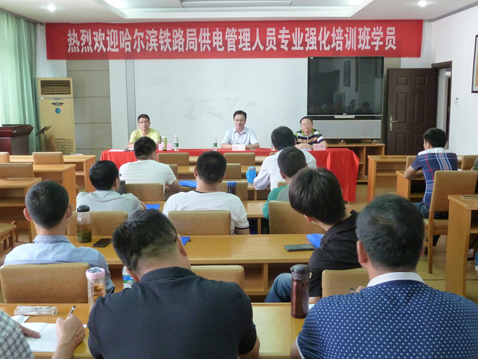 9月12日,哈尔滨铁路局供电管理专业强化培训班开班仪式于公司会议室举行。学院副经理刘仕兵、哈尔滨铁路局供电处工程师黄远生出席了此次会议。铁道电气化教研室主任申惠主持开班仪式。