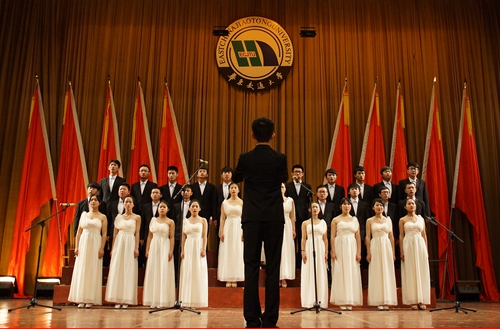 “我们是五月的花海,用青春拥抱时代;我们是初升的太阳,用生命点燃未来。”一首团歌,一腔热血,一身正气,统一曲目《共青团歌》彰显着当代青年的蓬勃朝气。15级电子一二班演唱的《雁南飞》,真挚朴实的情感、优美的旋律,音色柔和婉转,歌声像天空中大雁一般自在从容。“如果祖国受到侵犯,热血男儿当自强。”气势磅礴的《中国军魂》,展示了不畏艰辛、视死如归的中国军队军魂,公司首届卓越班唱出了青年学子的满腔热血。一首《太行山上》回荡南礼,时而高昂、时而低亢,将大合唱的气氛推向了高潮。