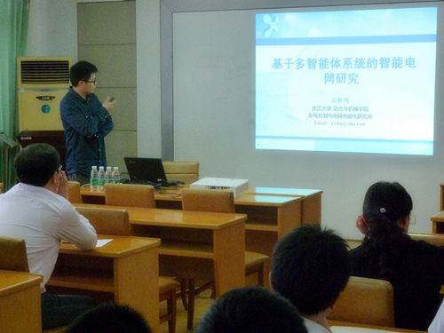 应356体育在线官网经理陈世明教授的邀请,5月9日,武汉大学动力与机械学院自动化系刘智伟博士来校进行学术交流,并举行题为《基于多智能体系统的智能电网研究》学术讲座,学院老师及研究生参加讲座。