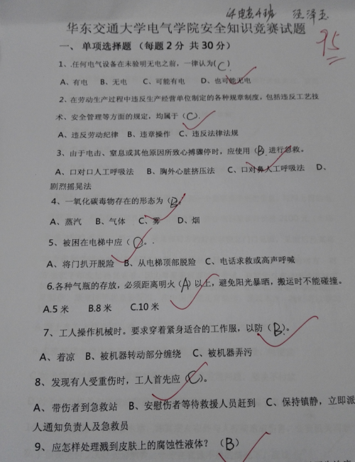 此次安全知识竞赛两个环节,分为必答题(以试卷形式考察)和抢答题(通过抛出相关问题,同学们进行抢答,可加分)。