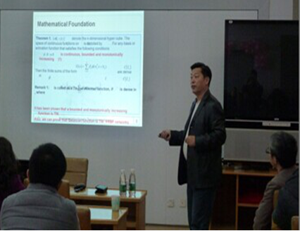 王殿辉教授首先由阿里巴巴创始人马云先生关于50元钱和51元钱的面试问题引出报告主题——随机问题,从大数据时代传统神经网络学习算法在应用领域所面临的问题,引出了快速有效的随机学习算法;接着重点介绍了1992年已经提出并得到广泛关注的随机学习机模型,以及1995年Lgelnik 和 Pao在数学上证明了这类随机学习机可以概率1逼近任何定义在紧集上的连续映射;最后,王殿辉教授结合自己多年来在计算智能等领域的深入研究,针对近年来具有误导性的随机学习算法及相关问题,通过反例阐述了随机权配置的重要性,并根据研究体会和大家分享了随机学习机的一些重要结果。