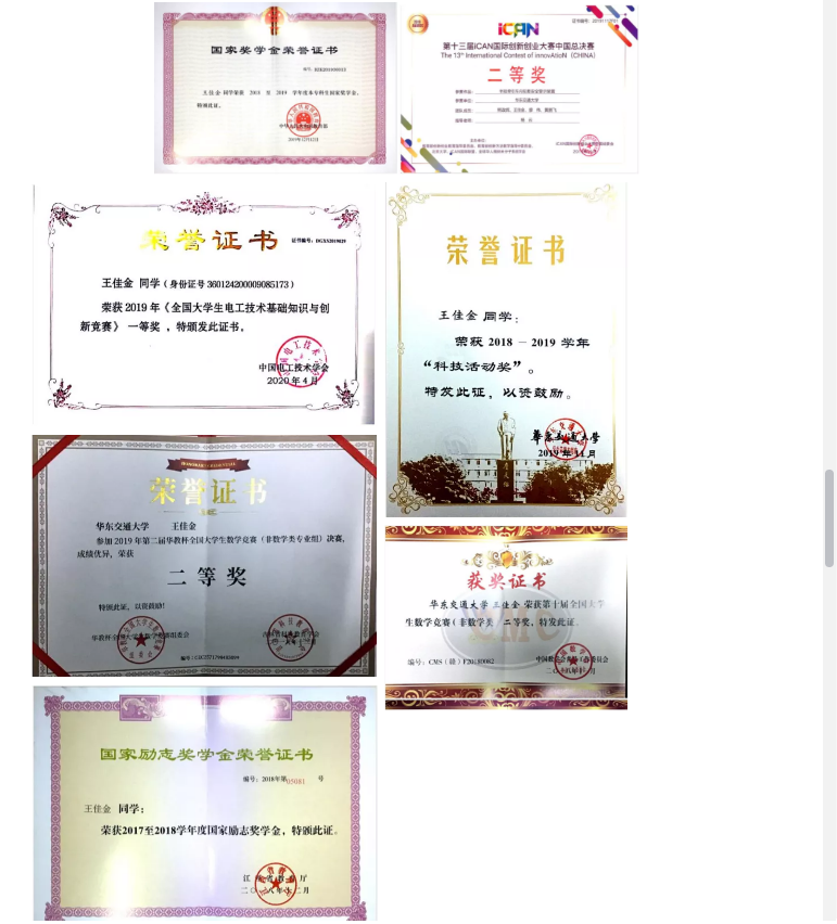 王佳金,男,中共预备党员,356体育在线官网电力系统2017-2班,学习绩点4.27,在校期间曾荣获国家奖学金、国家励志奖学金、校特等奖学金、校自强奖学金、电气员工科技创新奖学金;“校三好员工”、“院十佳老员工”称号;2019年第十三届iCAN国际创新创业大赛中国总决赛二等奖、2019年全国老员工电工技术基础知识与创新竞赛一等奖、2019年全国老员工英语竞赛三等奖、2019年全国老员工电子设计大赛江西赛区二等奖、2018、2019年全国老员工数学竞赛二等奖。现保研至浙江大学能源动力专业。