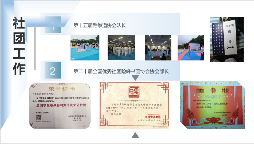 A:我的爱好比较广泛,大多都是从小就开始培养的,比如钢琴和吉他、书法和绘画。虽然学习和工作都十分繁忙,我仍然坚持定期练习。并且积极参加相关比赛和活动,也获得了一些小小的荣誉。我也会一直坚持体育锻炼,保持劳逸结合。这样规律的作息和各式各样的兴趣爱好让我认识了很多志同道合的朋友,也给了我更多的鼓励。