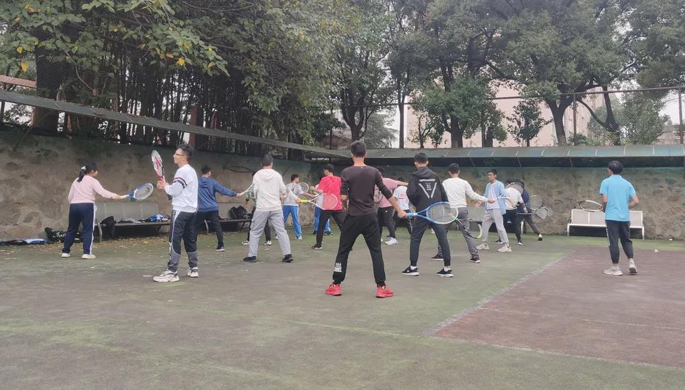网球队是一个欢乐和谐的大家庭。队员汪刘弘哲谈到:“训练时,大家都十分严肃,追求完美,我们队员之间也会相互鼓励,相互切磋,同心协力,共同进步。训练之余,我们的队伍永远欢声笑语,每个人都能在这里找到归属感,与志同道合的朋友在一起,才能感受到真正的快乐。”