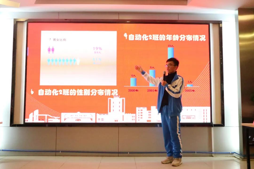 在主持人魏欣悦同学的介绍下,本次主题班会活动正式拉开序幕。团支书邱逸凡用图文并茂的PPT首先对班级情况进行介绍,并展示了班级开学期间参与的各项活动。随后,员工代表们分别用自己的方式向各位老师们进行自我介绍,互相认识,加深印象,让老师们深入了解自动化2班这个团结上进的大家庭。