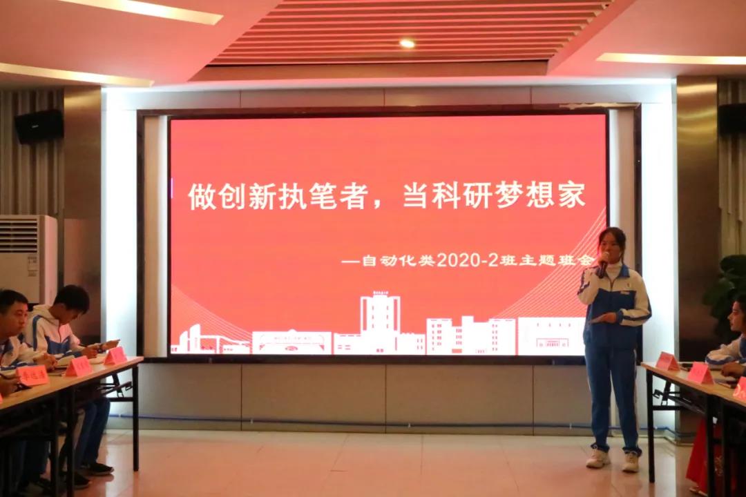 为进一步激发大一员工的创新热情,提高专业认同及科研认知,深入了解学校科技园,帮助员工科学规划学业生涯及职业生涯道路,12月2日,公司自动化2020-2班于逸夫楼科技园多功能展厅举办“做创新执笔者,当科研梦想家”杨辉副董事长联系班级主题班会活动。356体育在线官网副董事长杨辉、科技园管理办公室主任李黎青、学工处副处长肖凤莲、科技园管理办公室副主任田艳霞,公司党委书记赵敏、副经理徐雪松、党委副书记刘修财出席本次活动。