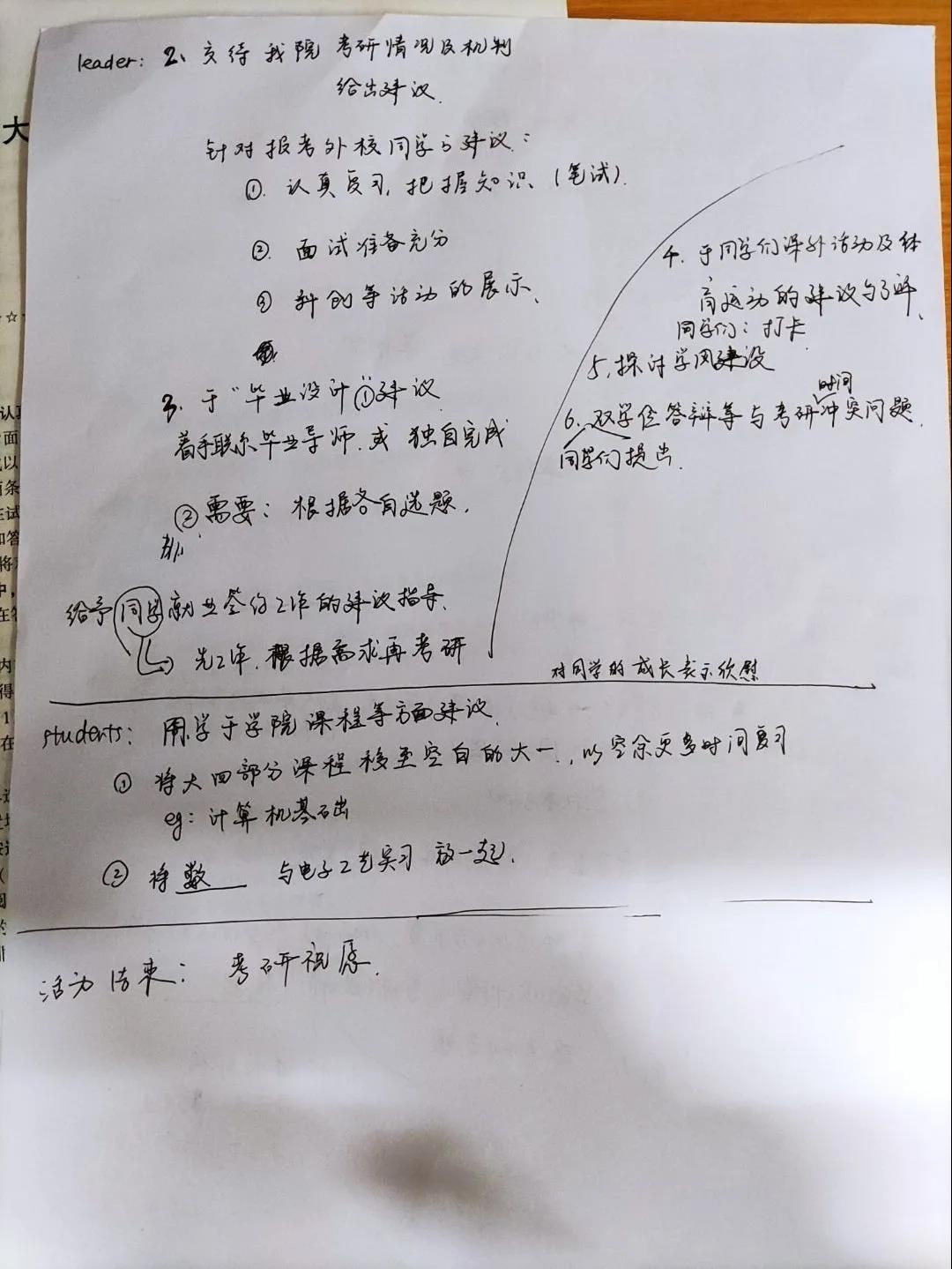徐雪松对同学们在大学三年来取得的成绩表示肯定,并鼓励同学们积极发言,总结自身情况,大胆规划未来方向。在徐雪松的鼓励下,由班长张世杰开始,同学们依次介绍了自己大学三年来的收获和对未来的规划。
