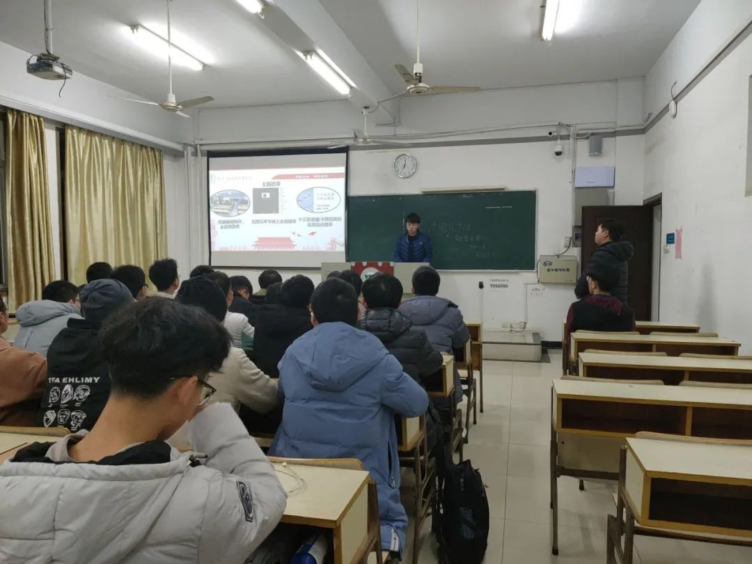首先,班长张鹏晖从班级组成、学风建设、安全教育、爱国教育、志愿活动五个方面汇报了班级基本情况,团支书桂宗藩介绍团支部及团员基本情况。他表示,班级团支部通过多次开展主题团课、举行团日活动提高同学们的党性修养和团学素养,让同学们能够将团课上学习的知识贯彻到生活中的点点滴滴。
