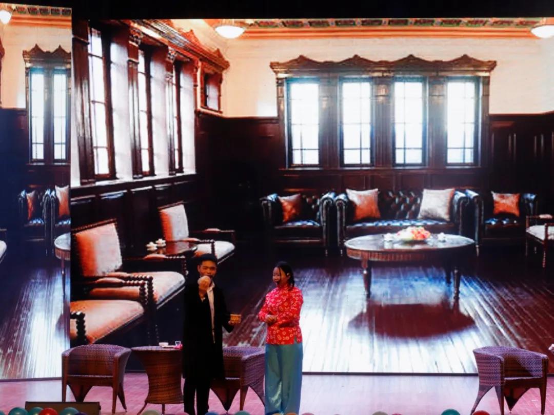 晚会由一段“新闻联播”拉开序幕。主持人用幽默风趣的语言,以别开生面的角度带领在场的老师同学回溯公司在过去一年中的要事、趣事。在欢笑之余,学院的优秀学子和杰出成就让在场的同学印象深刻,会场中时不时响起热烈的掌声。