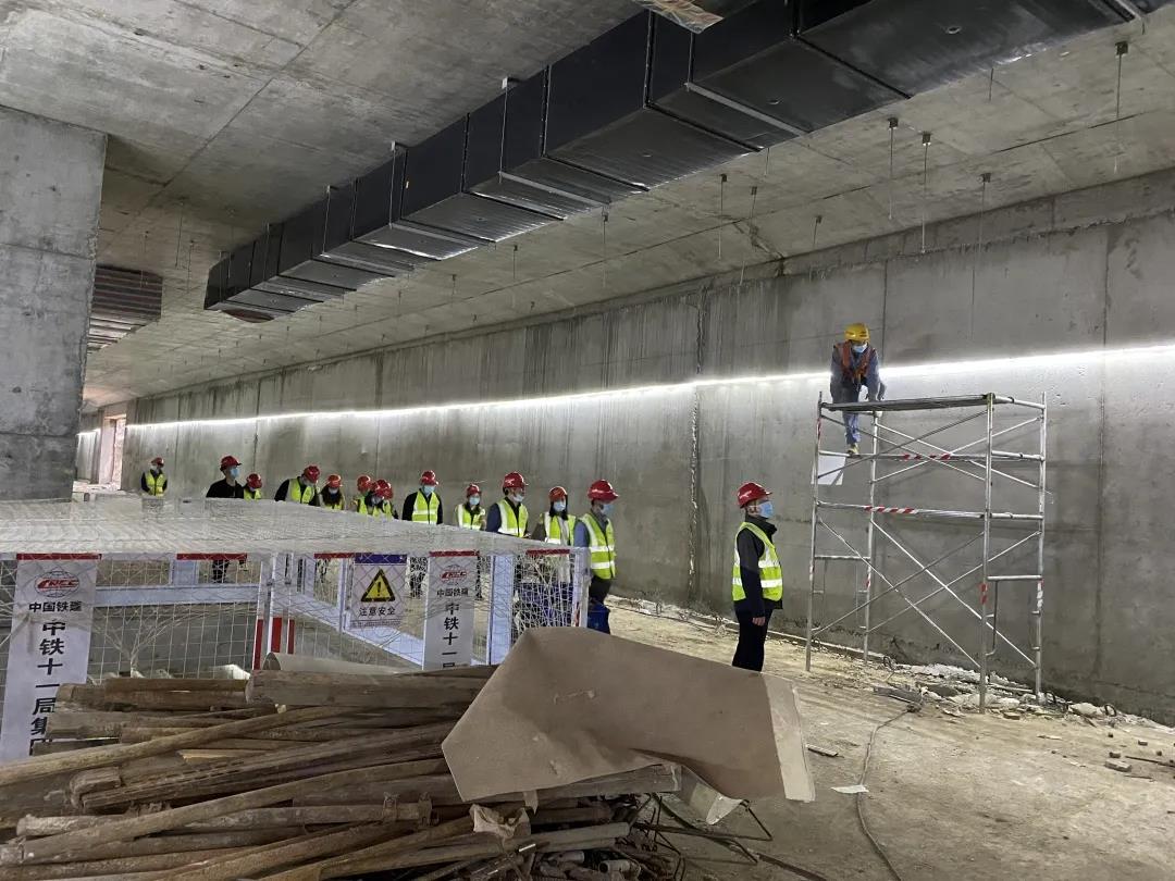 会后,韦宝泉、刘修财一行参观了项目党支部的党建文化墙与党员活动室,并到施工场地进行了实地的考察学习。