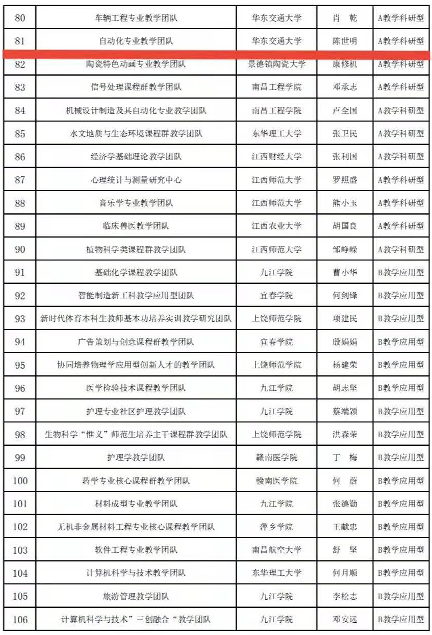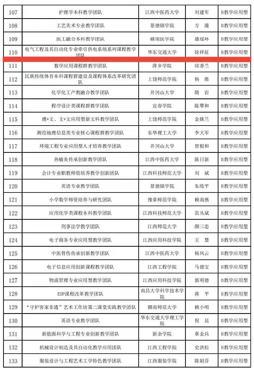 2020年江西省高水平本科教学团队立项建设名单公示,公司两个团队获批:陈世明经理《自动化专业教学团队 》获批教学科研型;徐祥征教授《电气工程及其自动化专业牵引供电系统系列课程教学团队》获批教学应用型。