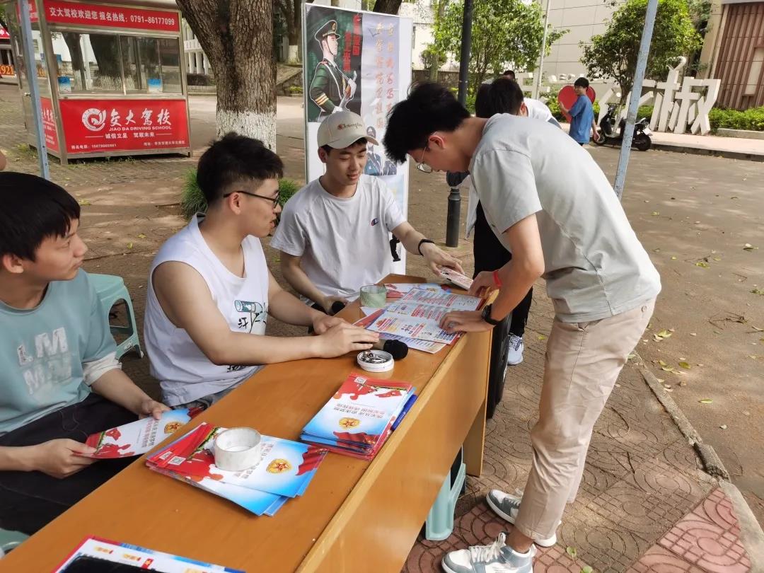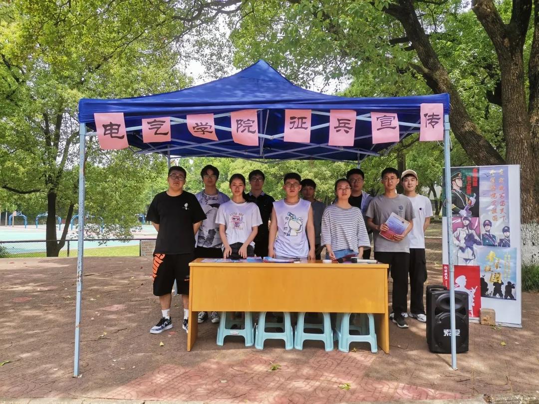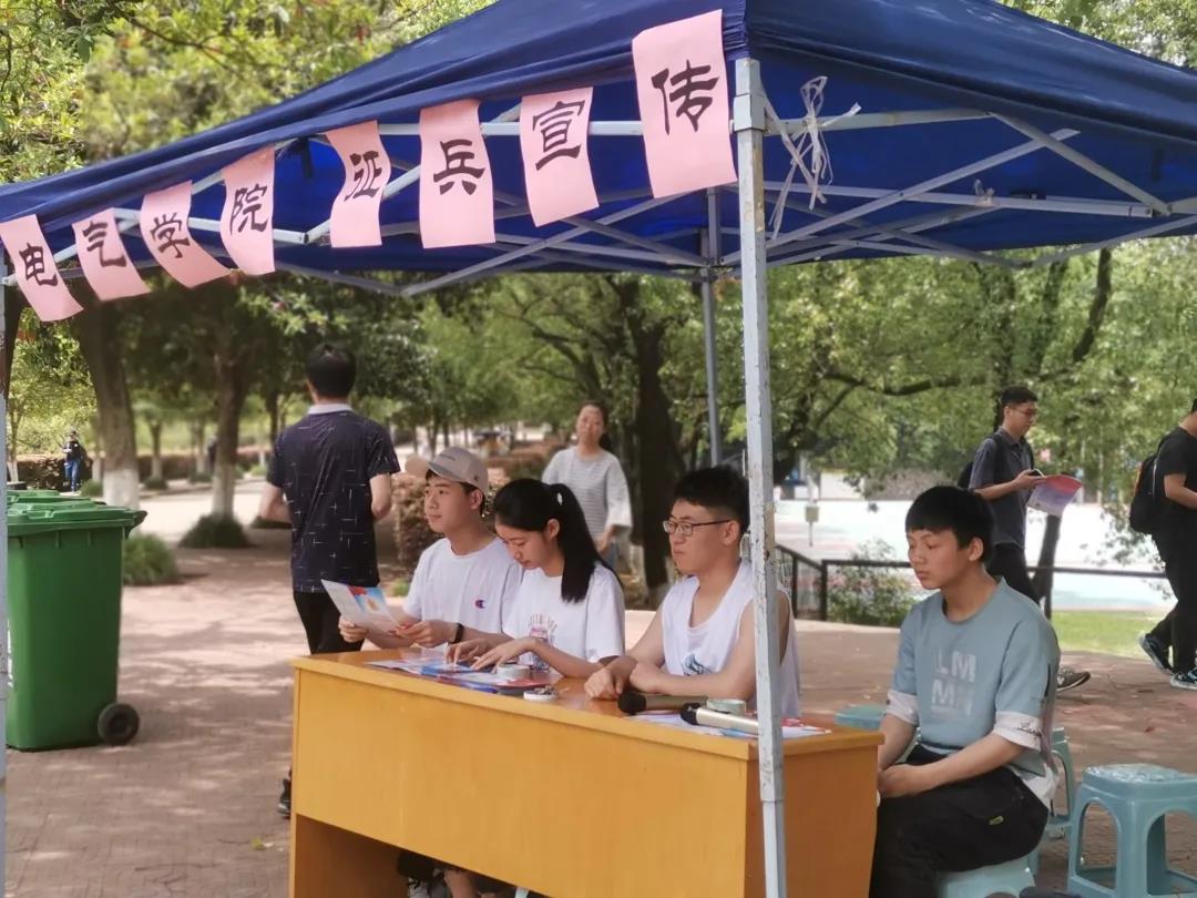 参军报国尽义务,热血青春竞风流,2021年度下半年征兵报名已然开始,为让征兵宣传切实走进校园,进一步增进老员工对征兵政策的了解,激发青年人参军报国的热情,5月3日,356体育在线官网电子及建电员工党支部于南区一食堂对面组织开展征兵宣传活动。