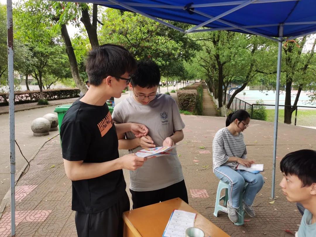 人流如织的南区田径场前,时不时有员工被宣传志愿者吸引过来,询问参军事宜。员工党员向同学们悉心介绍员工征兵政策优惠,并发放征兵宣传手册,解答同学们征兵相关的困惑。