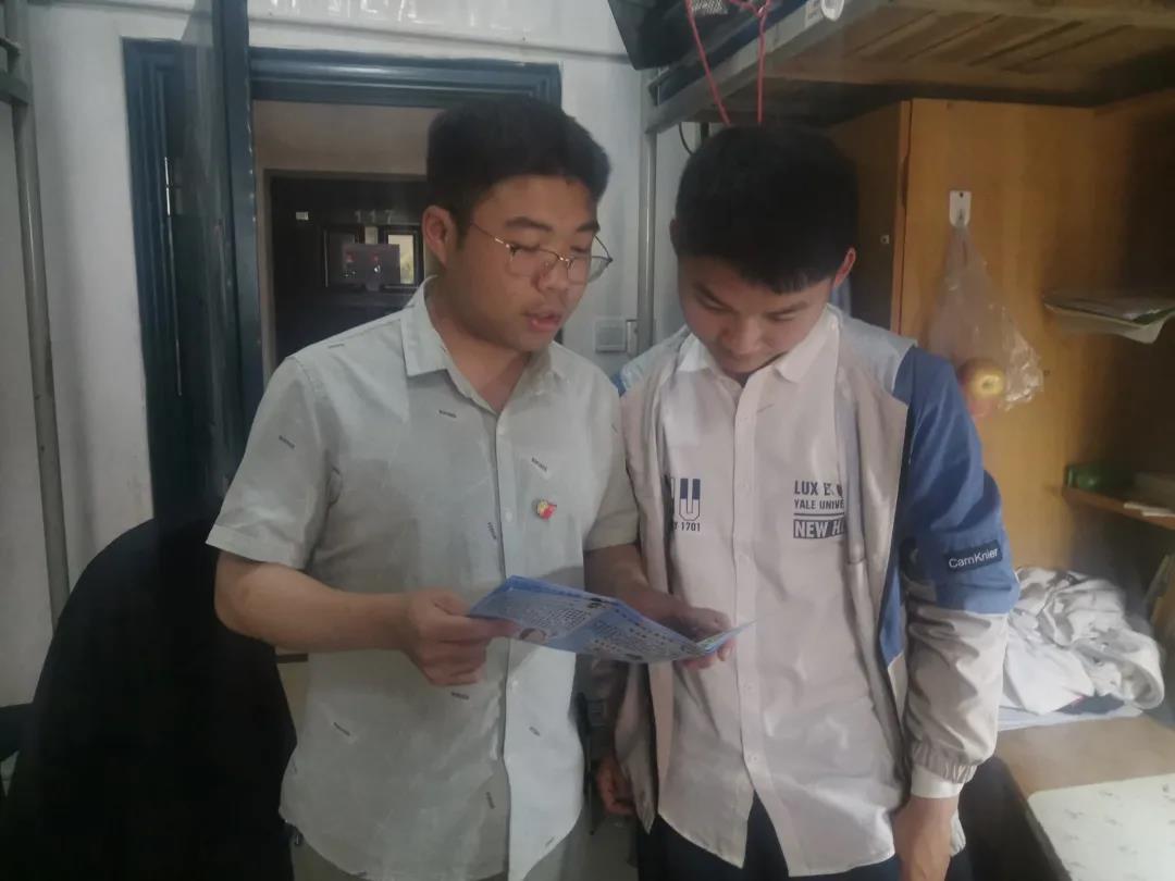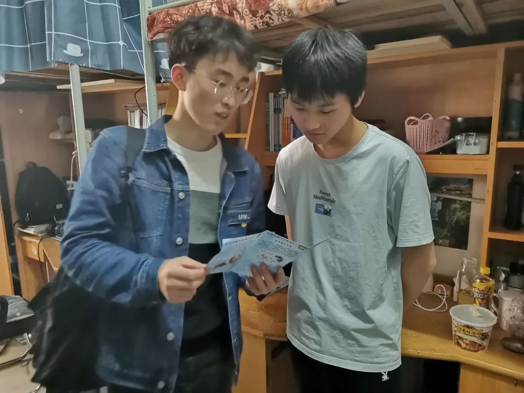 此外,部分带班党员还深入员工寝室,在进行查寝的同时,也向寝室的同学们发放防诈宣传单,开展防诈骗知识的宣传。