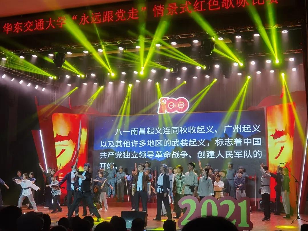 据悉,此次歌咏比赛以南昌起义、八一起义为时代背景,结合音频、默剧表演、舞蹈和合唱相结合的形式,演绎了中国共产党为革命事业播撒下革命火种以及在逆境中反抗的无比英勇的战斗历史。