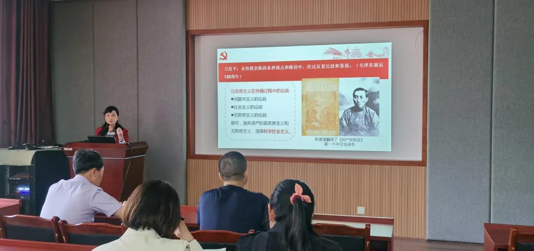 习近平总书记在党史学习教育动员大会上强调:“党的百年历史,就是一部不断推进马克思主义中国化的历史”。党自建立之日起,就秉持着守正创新、实事求是的马克思主义思想,带领人民不断克服磨难、奋勇探索,成就了今日的伟大辉煌。5月20日,公司马克思主义学院副教授李曦老师到356体育在线官网进行党史宣讲,讲述百年党史中深推自我革命的历程。