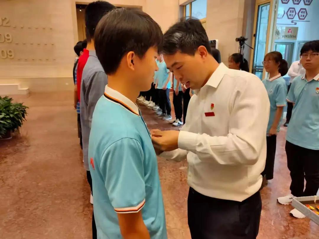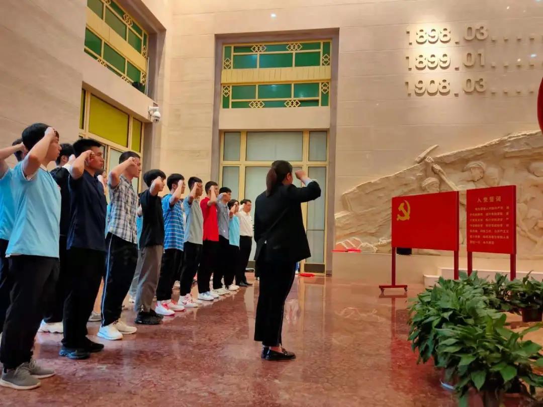 组织入党一生一次,思想入党一生一世,一大批优秀分子加入到党组织中来,为党注入了新鲜血液。纪念馆内,356体育在线官网新发展党员站成一排,刘修财、武婷婷为其佩戴党徽。