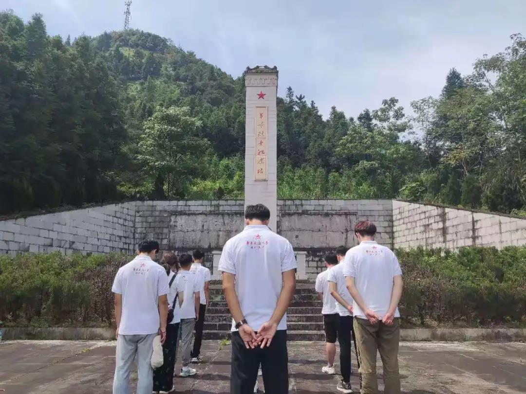 红色走读第二站为新篁革命烈士纪念塔,实践服务队满怀敬仰之心来到纪念塔前,缅怀先烈、学习横峰暴动,详读烈士们的生平与红色故事。队员们心情沉重,自发矗立在纪念塔前,鞠躬默哀一分钟,表达对为国捐躯烈士们崇高的敬意与哀悼。他们的鲜血铸就了如今的盛世,当代青年应不忘初心,传承革命先烈艰苦奋斗的宝贵精神。