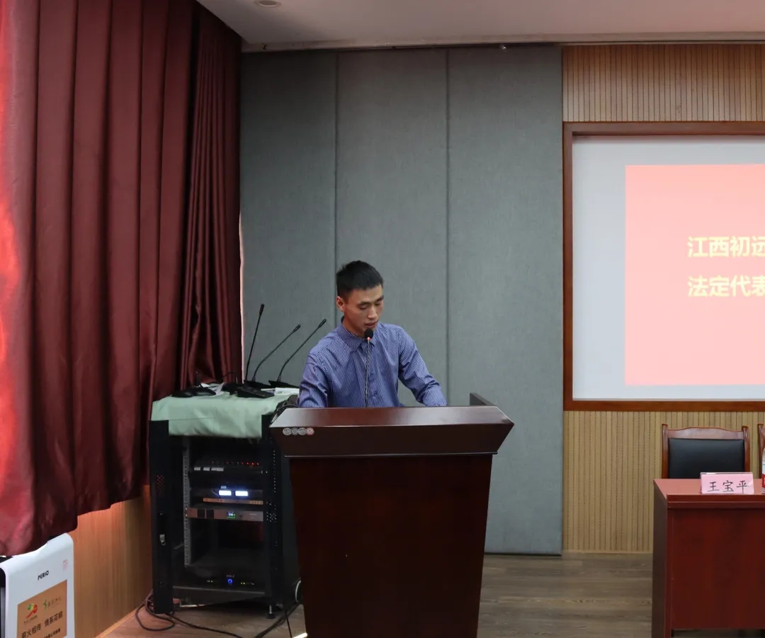 王宝平代表江西初远文化传播有限公司发言,他指出,公司自愿在2020年捐赠价值30000元运动服及体育物资的基础上,再向公司捐赠价值150000元的物资,并自2021年起分五年交付完成。作为公司15级员工,他指出公司在第38届校运会能够勇夺冠军与公司学子一直保持勤勉的训练态度、刻苦的拼搏精神息息相关。在备战本届校运会的过程中,他将作为学院与公司之间的桥梁,用公司专业的服务为运动员们带来便利,同时,他也预祝公司在本届校运会取得圆满成功。