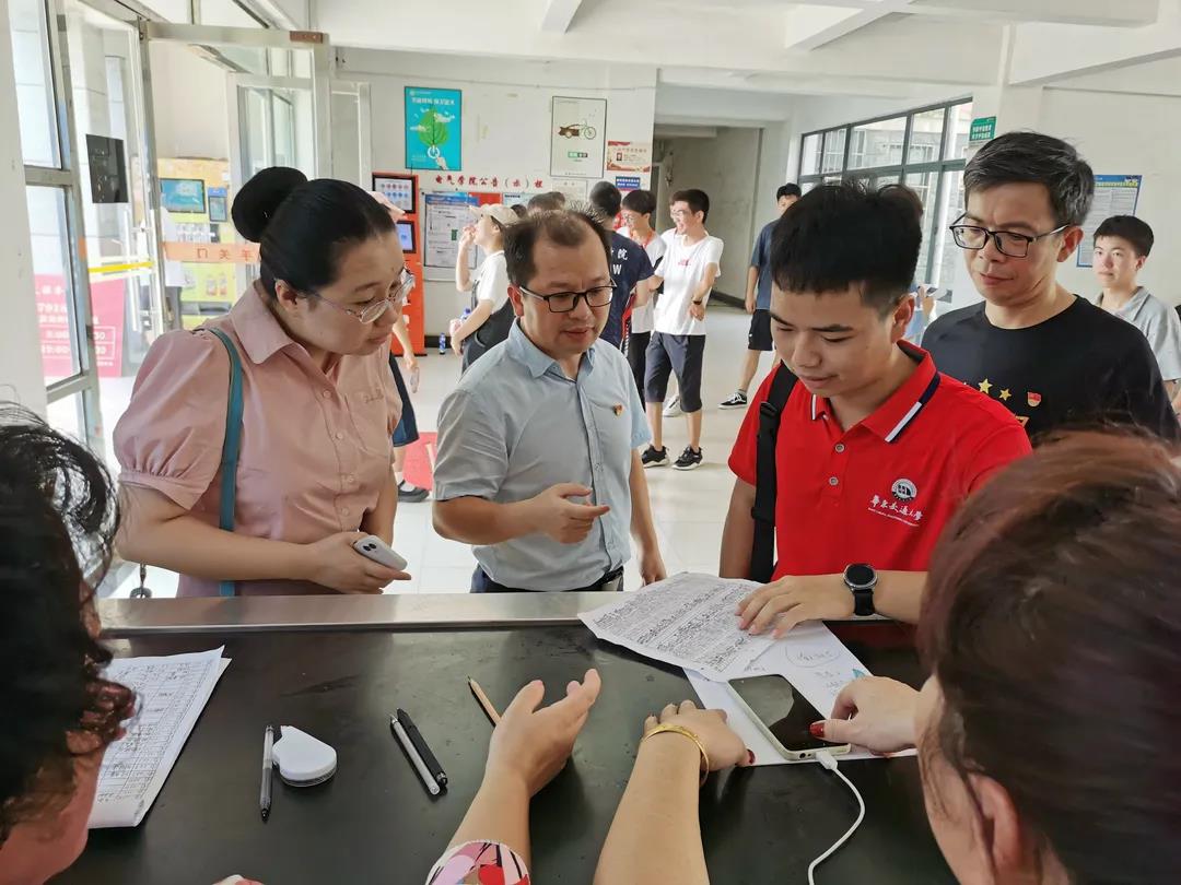 为保障迎新工作顺利开展,学院经理陈世明,党委书记赵敏,副经理徐雪松、韦宝泉,党委副书记刘修财,经理助理丁青锋前往学院各个迎新站点,现场指导迎新工作,亲切慰问工作人员及报到新生。