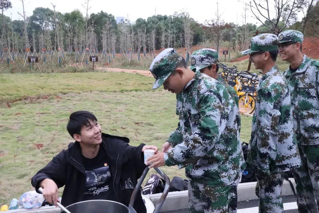 10月21日,由员工党员组成的“送暖小分队”,为正在寒风中军训的新生们和教官们送去红糖姜茶,为他们驱散点点寒意,带来阵阵温暖。
