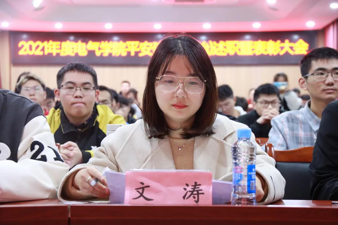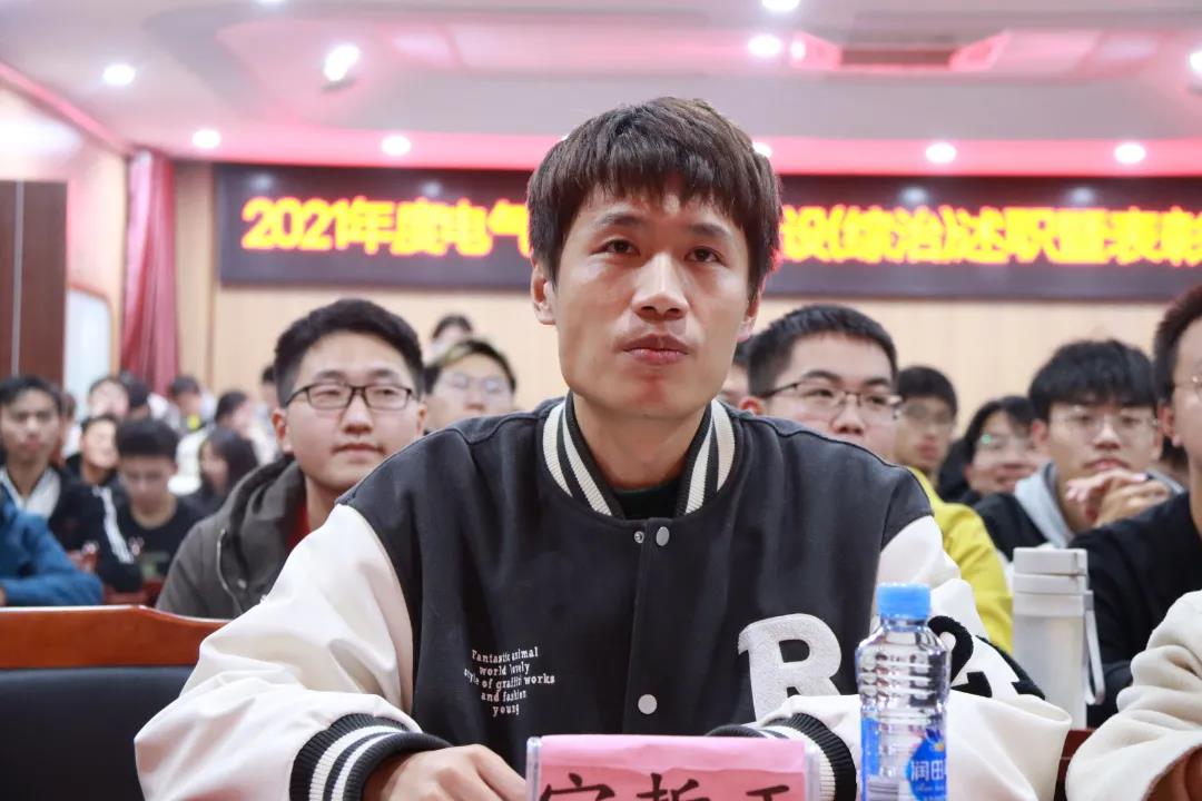 各代表以演讲形式结合PPT,从班级组成、团建活动、综治工作等方面概略了本班级的基本情况以及在安创、综治方面的优良表现。19级电化2班“班会寝室化”概念的提出让人眼前一亮,同时也为安全教育和综治工作的开展提供了新的思路和方法;19级信号1班“慎而思之,勤而行之”的班风和“苦读有恒,好学无时,勤习有益,乐思无疆”的班训,充分展现了班级优良的精神风貌和深厚的文化底蕴;20级电气1班则关于班级同学未来的发展提出了自己的坚持——“天道酬勤,人道酬诚”,各代表慷慨激昂的发言为述职报告绘上了班级的特色,获得了全场同学的一致赞赏和好评。