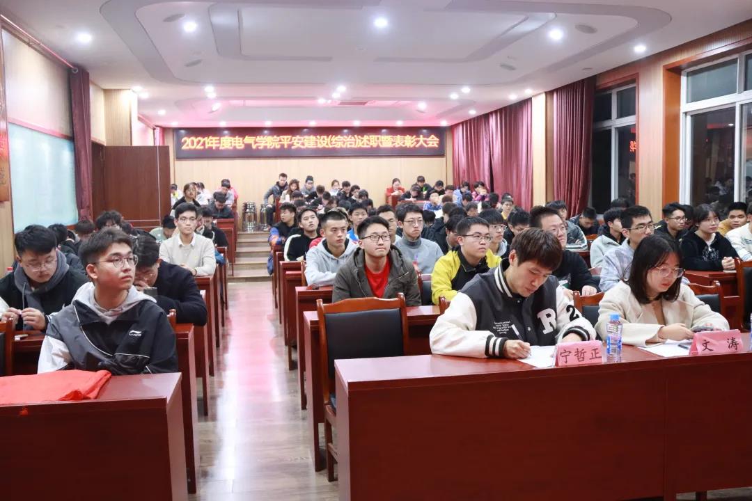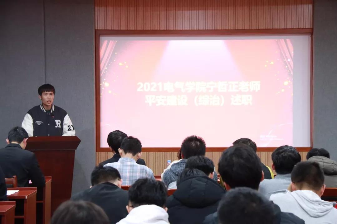 会议伊始,由356体育在线官网安全文明创建中心主任方骏做部门年度平安建设(综治)述职。他表示,在过去的2021年里,356体育在线官网十分重视校园平安建设及学院综合治理工作,并取得阶段性成功。各部门协调合作、防微杜渐,始终将安全问题放在首要位置,为平安校园的建设做出了重要贡献。同时,方骏也向学院和同学做出保证,安创中心在未来会更加关注校园安全问题,继续深化综治工作,成为电气学子生活的坚实后盾和保障。