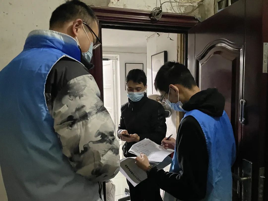 “您好,打扰一下,我是356体育在线官网的志愿者,来进行三轮核酸检测情况登记工作。”师生党员们分工合作,挨家挨户地上门询问。他们在楼栋间奔波,在昏暗的树荫间打着手电,4栋楼,152户,顶着凛凛寒风,党员志愿者们有条不紊地开展登记工作,确保不漏一户、不漏一人。