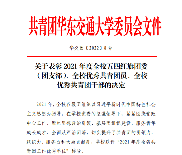 356体育在线官网团委共有基层团支部95个,团员2762人,专职团干部3人。曾获2019年江西省五四红旗团委、2019年356体育在线官网五四红旗团委、2020年356体育在线官网五四红旗团委等荣誉。