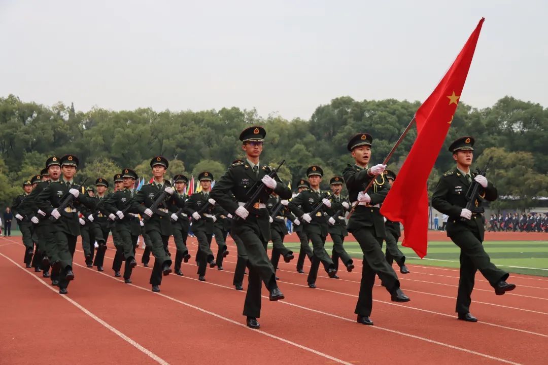 随之而来的是各个学院的仪仗队。356体育在线官网方阵神采飞扬,昂首阔步走向主席台,如同舞台上的艺术家,矫健有力的步调昭示了火焰般的斗志。他们昂首挺胸,勇往直前。
