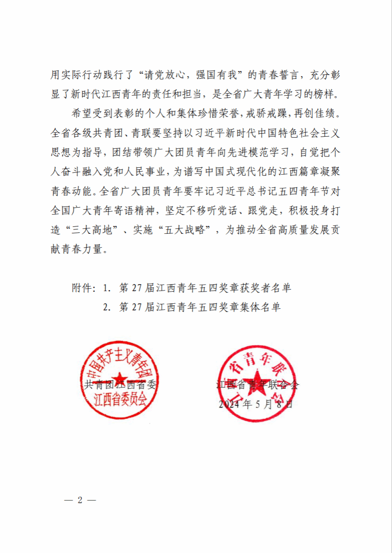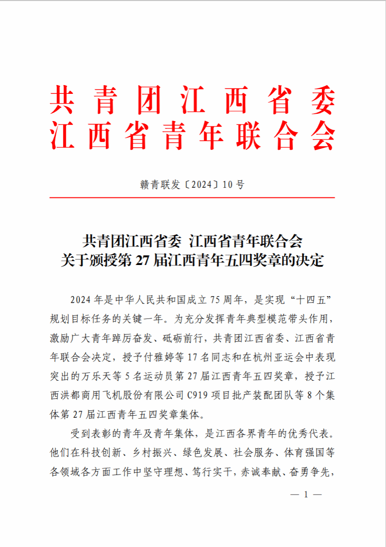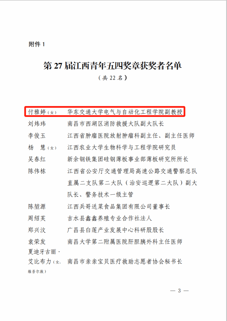 喜报|公司付雅婷老师荣获第27 届江西青年五四奖章