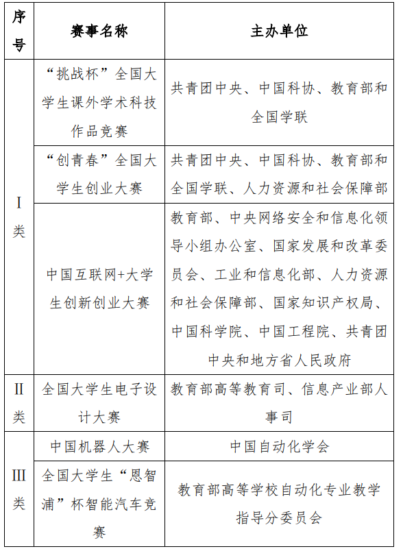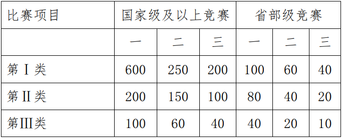 (2)除第Ⅰ类赛事获国奖且排名第 1 的人员外,参加多项赛事只记最高水平加分,不重复累计;