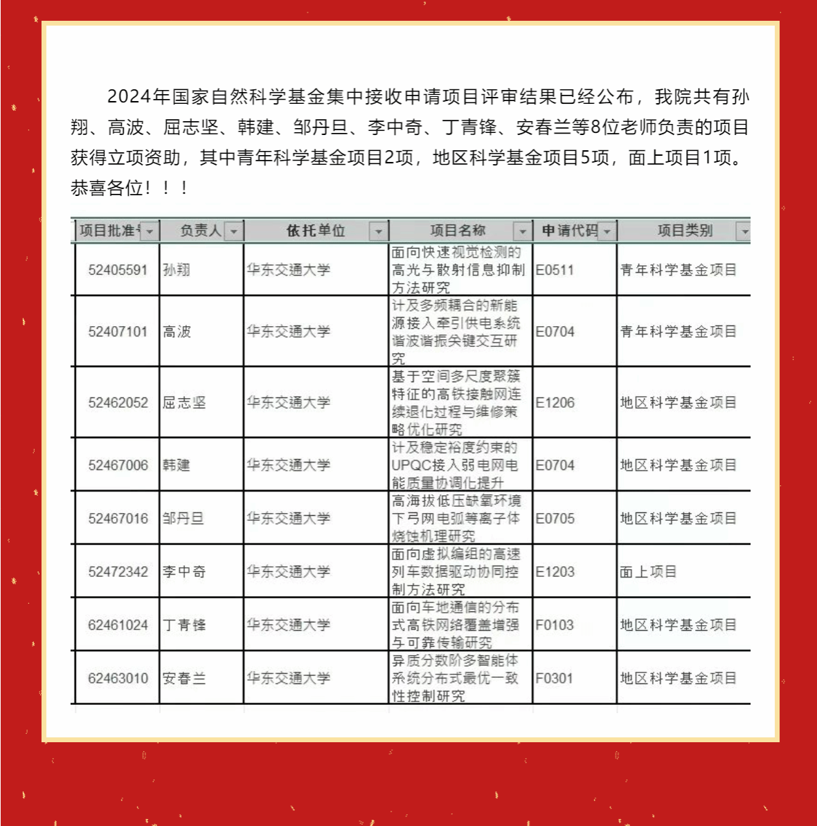 喜报 | 祝贺公司8个项目获2024年度国家自然科学基金立项资助