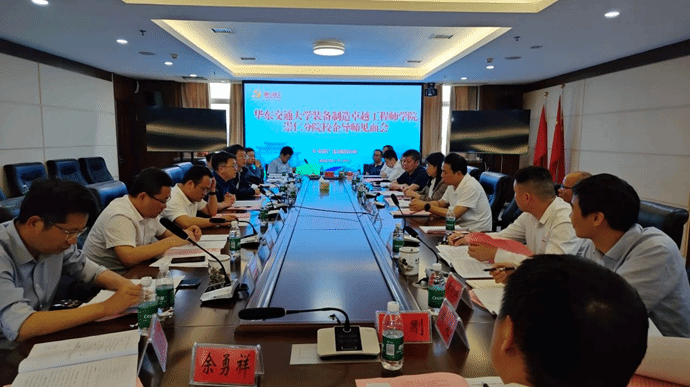 参观学习后,校企双方进行了座谈交流。崇仁县企业负责人对各自企业的发展历程、生产工艺、设备设施及其在行业领域中的技术优势等作了详细介绍,电力牵引教工党支部介绍了学院电力牵引专业的发展现状和未来规划。双方就校企合作、人才培养、科技创新等方面进行了深入探讨,确定了以企业实际技术需求为导向设置培养方向,构建产学研贯通的培养路径。