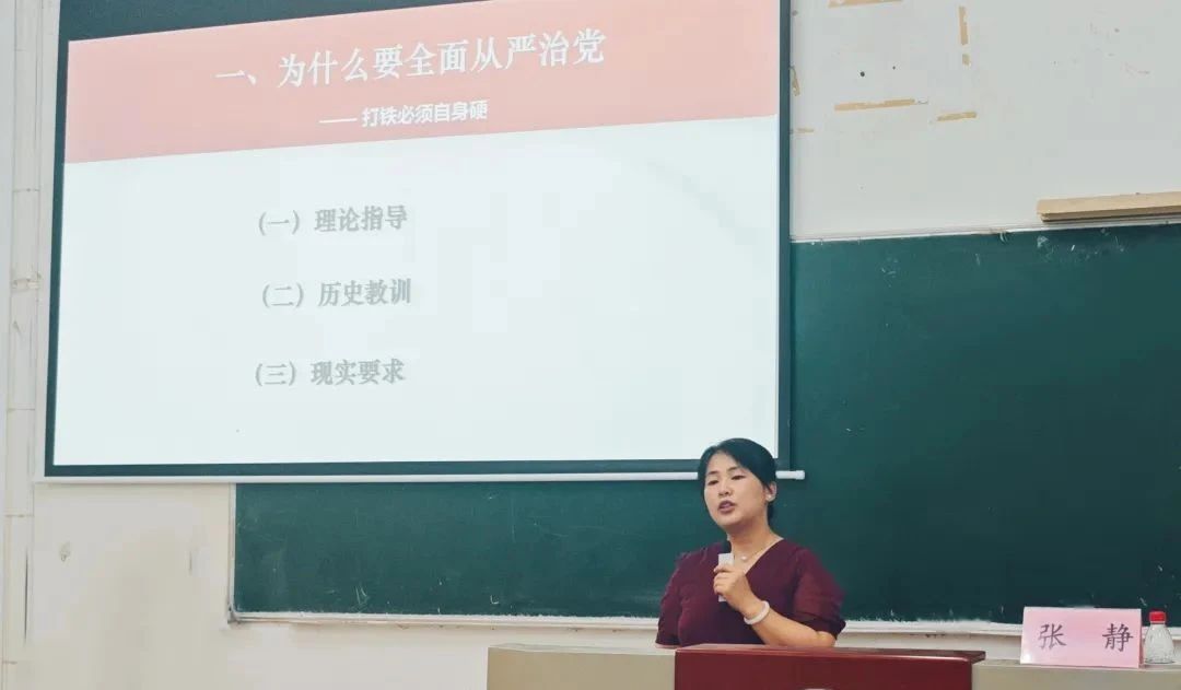 6月10日,356体育在线官网第二十五期发展对象党课培训在教10栋举行,马克思主义学院张静老师为党课学员们讲授党课第三讲——从自我革命的精神推动全面从严治党。
