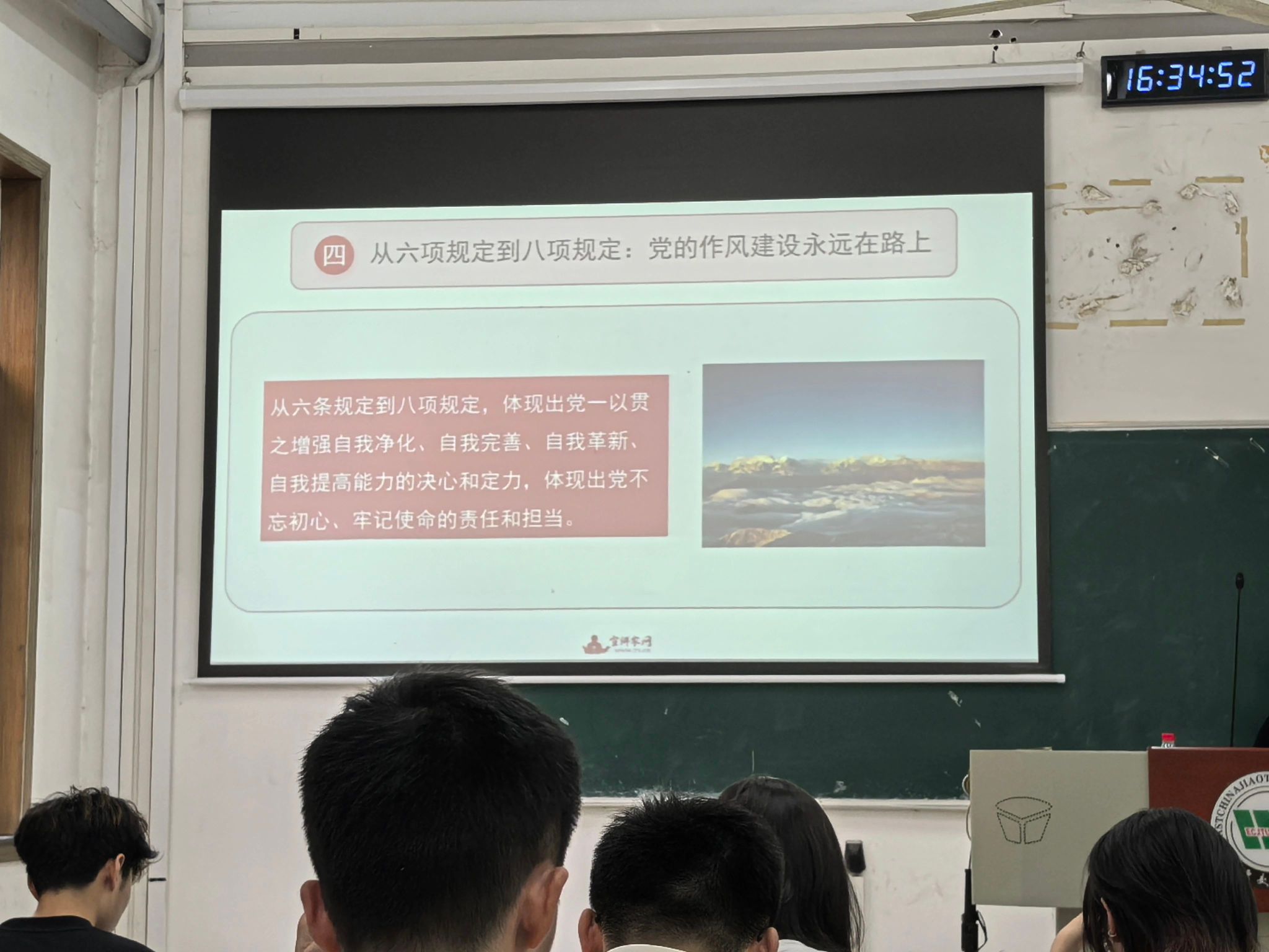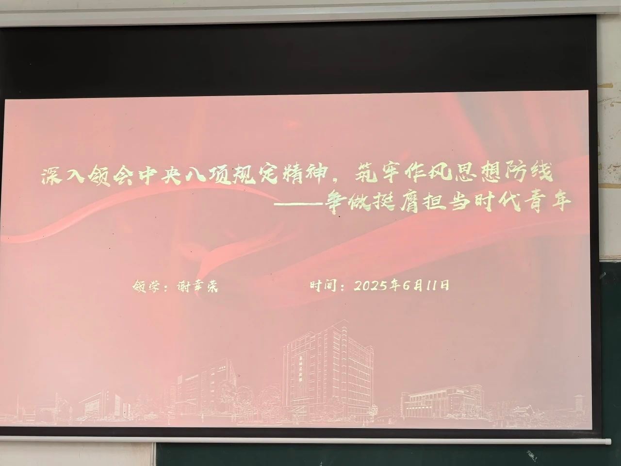 最后,谢幸荣老师指出,全体学员要主动学习党的纪律要求,将规矩转化为政治自觉、思想自觉、行动自觉。以“挺膺担当”的姿态,在全面深化改革中贡献青春力量!她表示,作风建设没有休止符,自我革命永远在路上,以八项规定精神为镜,共同营造风清气正的时代新貌!