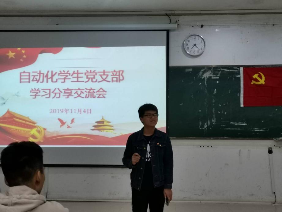 日前,自动化员工党支部组织2019级自动化类部分同学在10栋113开展了学习分享交流会活动,帮助大一新生们树立好积极的奋斗目标,进一步增加对自动化员工党支部、党的基本理论知识的了解。