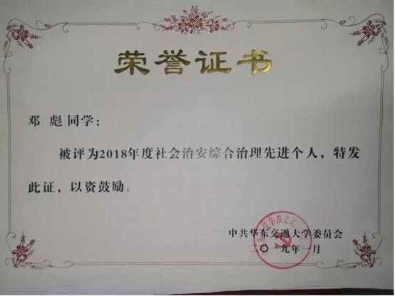 2019.01 2018年度社会治安综合治理先进个人