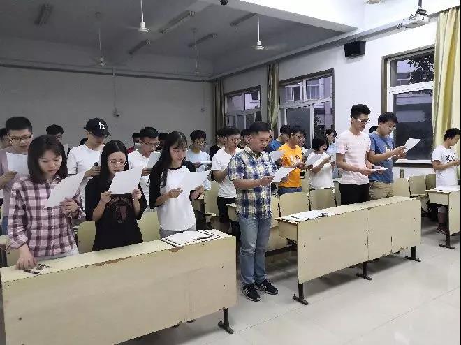 活动最后一项,全体党员同志起立,凝视党旗,右手握拳,重温入党誓词。