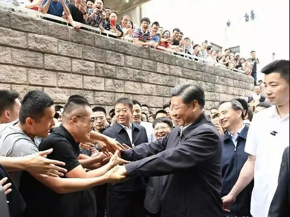 习近平同校园道路两旁的师生热情握手
