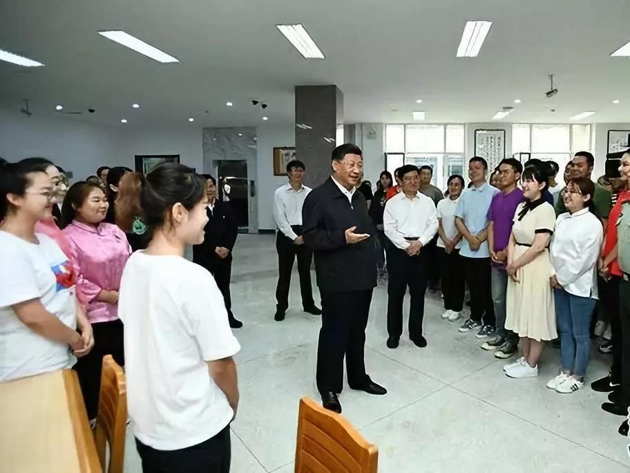 2019年7月16日,在内蒙古考察的习近平来到内蒙古大学。在图书馆阅览室学习的员工看到总书记走进来,顿时沸腾起来,聚拢到总书记身边。习近平亲切地同他们打招呼,询问学习生活情况。他指出,同学们要志存高远、脚踏实地,学好知识,打好基础,增长才干,将来为中华民族伟大复兴贡献自己的智慧和力量。