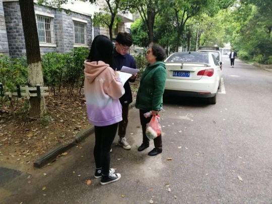 我们的党员同志热情地和住户居民进行交流,聆听他们对近年来生活变好的喜悦,也记录他们生活中还需进一步完善的需求。对于年纪大且听力不够好的老人,我们逐词逐句地讲述我们调查的问题,也耐心去听他们的回答。
