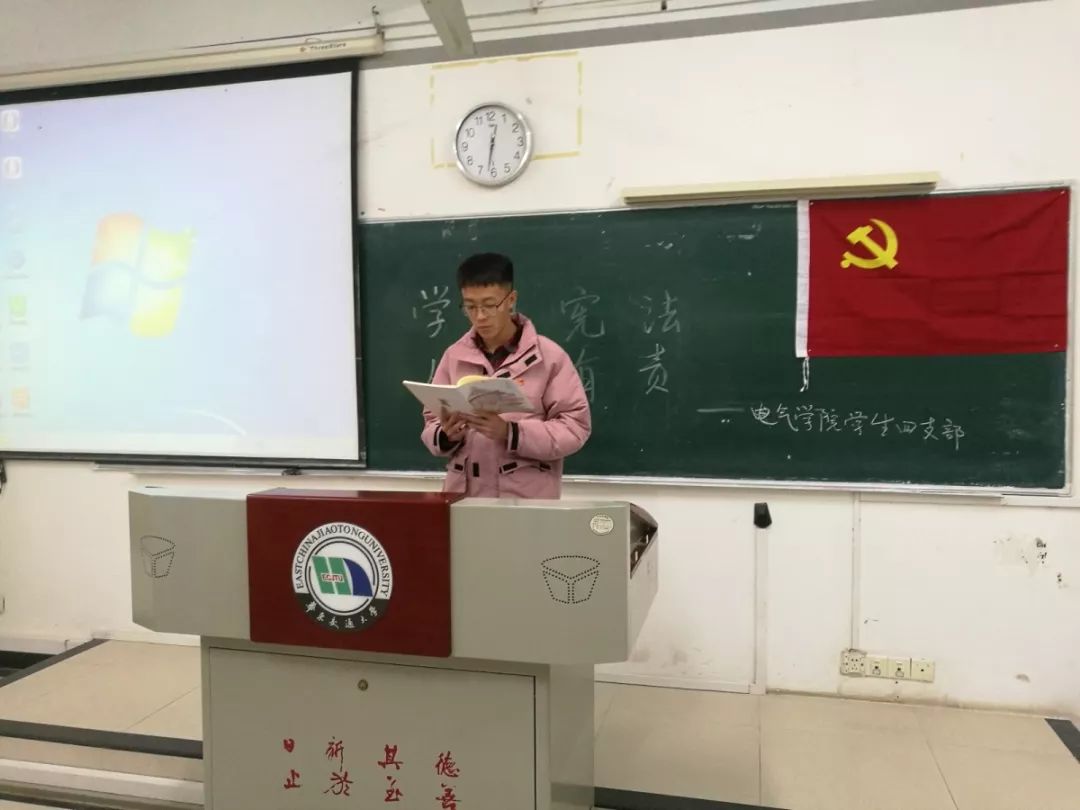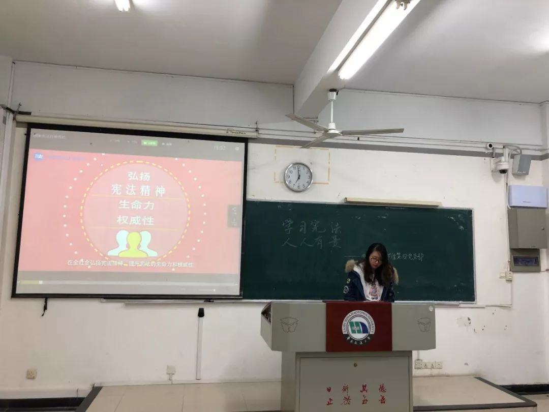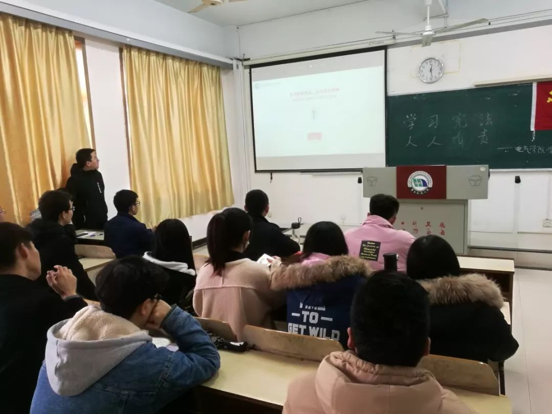 员工党员肖天飞同志发表学习感想说:“宪法是国家的根本法,具有最高法律地位,法律权威、法律效力。在人民当家作主的中国,我们每个人都应该懂法、守法,不断增强法治观念,这对维护社会安定、促进社会发展有着重要意义。”18级电气三班的严子华表示,宪法是一个国家的根本大法,每一次修改,都是国家领导班子的思想结晶;每一次学习,都是思想境界的提升;每一次体会,使命感与责任感都得到加强。