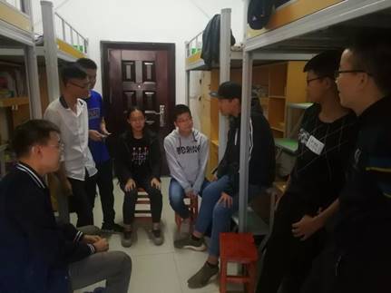 寝室成员往往来自五湖四海,在生活习惯、思想观念上有很多不同,需要寝室成员互相磨合。如果磨合不到位,寝室成员之间很容易发生矛盾甚至产生肢体冲突。带班员工党员在下寝室的时候也关注寝室成员之间的关系。